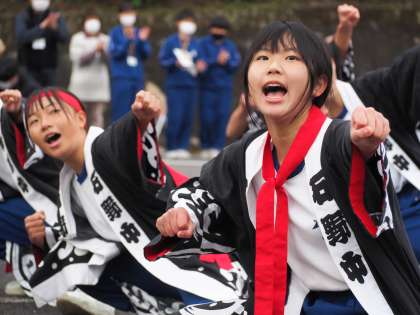 写真は、オープニングセレモニーで披露した「石中ソーラン」の様子です。