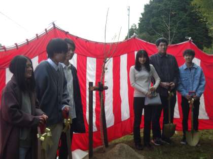 今年20歳を迎えた本校の卒業生たちによる記念植樹の様子です。