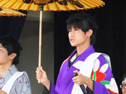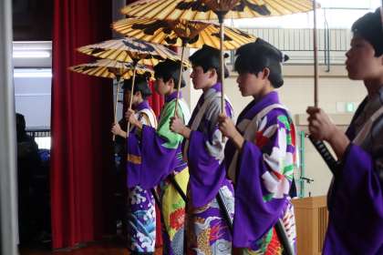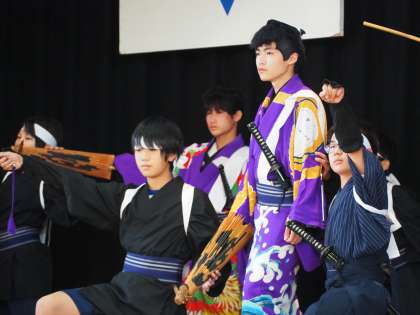 写真は、午後に本校体育館で行われた石中祭「石野歌舞伎」の発表の様子です。