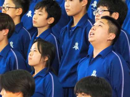 写真は、石中祭のエンディングで発表した「群読」の様子です。