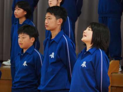 写真は、石中祭のエンディングで発表した「群読」の様子です。