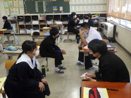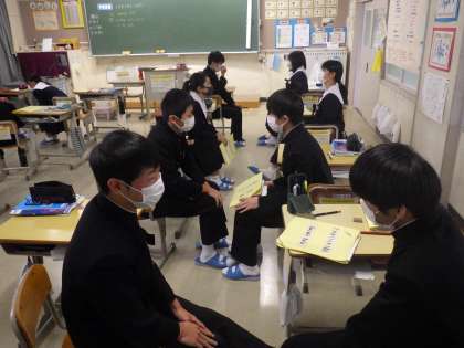 2文を1文にまとめる文法の学習でした。相手に質問をして、それに瞬時に答える。その答えを聞いてのリアクションまで、繰り返し学習していきます。相手を替えてさらにバトル。