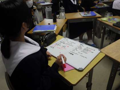 後半の発表タイムでは、グループ対抗戦に。一つでも多く、一人でも多くポイントを稼ごうと、いつも以上に活発に挙手する姿が印象的でした。