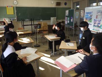 3年生の社会の授業・『模擬裁判』の学習の様子です。