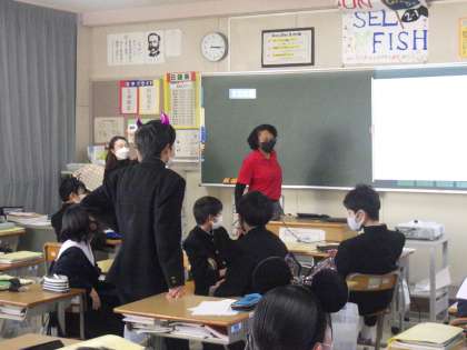 今日は、ALTとのコミュニケーション活動の日でした。グループ対抗のゲームを通して、これまで学習してきたことを発表していきます。