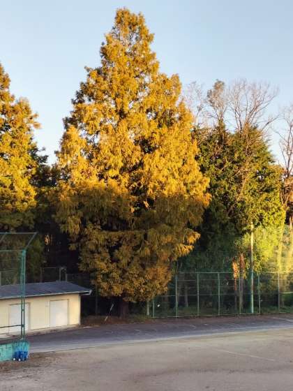 日の出とともに、石中のシンボルでもるメタセコイヤの木が朝日に照らされはじめ、黄金色に輝いて見えます。代休を含めたこの連休は、毎日天気が良く、とても快適に過ごせているので、本当にありがたいです。