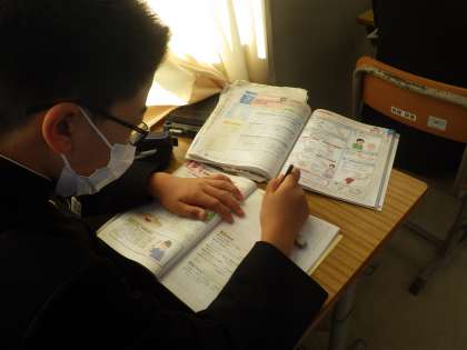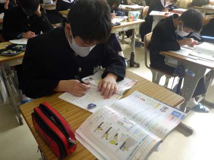 保健分野の単元で「応急手当」について学んでいました。様々なけがに対応する応急手当を調べていきます。学習した内容を日頃の生活に生かしてほしいと思いました。