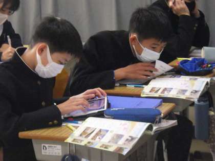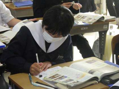近畿地方の発展の謎を解明するため、「都市はどう変化しているか」を課題に学習に取り組んでいました。教科書や資料集、タブレットや学習プリントなど、利用できるものをすべて使って、そのナゾに迫っていました。