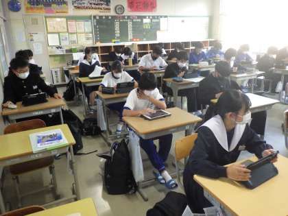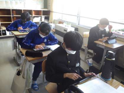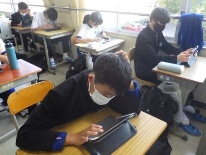 昨日に引き続き、今月末に予定されている「高校調べ発表会」に向けての資料の準備に取り組んでいました。1年生も参加するとあって、がぜんやる気が増しています。