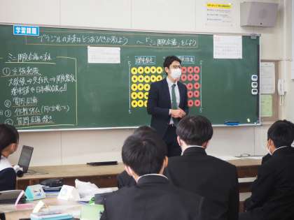 授業後は、他校から指導員の先生をお招きし、本校教員の授業レベルの向上のための協議会も実施されました。今後もこういった研修の場をはじめ、全教員が授業力の向上に向けて祖力していきたいと思います。