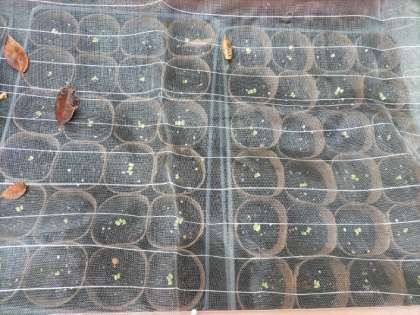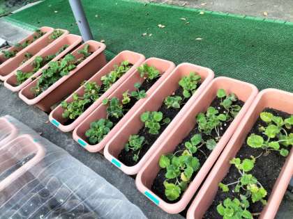 校舎北側の公務手さんの作業場には、植え替えを待つ花たちが所狭しと並べられています。順次、プランターや花壇に植えられ、春にはきれいな花w咲かせてくれることでしょう。