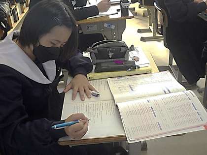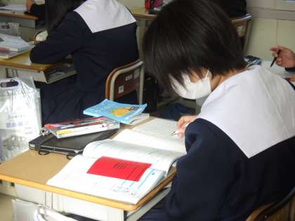 中間テストに向けて出題範囲の総復習・各自の勉強が行われていました。テスト課題に取り組んだり、単語や英文を必死に覚えている生徒もいます。これまで学習したプリントを見返して、弱点の克服を図っている生徒もいます。