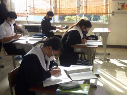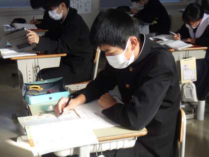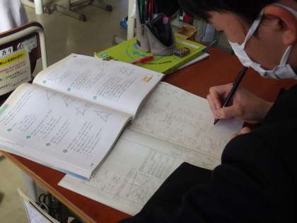 中間テストの向けて、出題範囲を総復習です。各自が自身に最も合った勉強方法で学習を進めています。この週末もしっかり勉強しているようで、ノートにはそのあとがしっかりと残されていました。