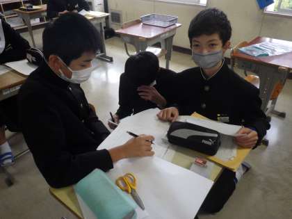 卒業文集の分担を決め、完成までの計画やアイデアを出し合っていました。3年間の貴重な思い出を振り返りつつ、大切な一冊になるよう、仲間と知恵を出し合っていました。
