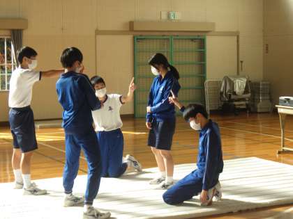 3年生の体育・マット運動の授業の様子です。
