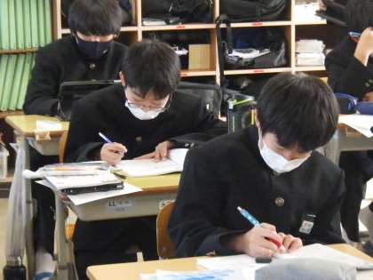 テスト前の出題範囲の総復習です。問題集や過去のプリントの問題に挑戦しています。