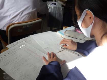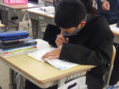テスト前の出題範囲の総復習です。問題集や過去のプリントの問題に挑戦しています。