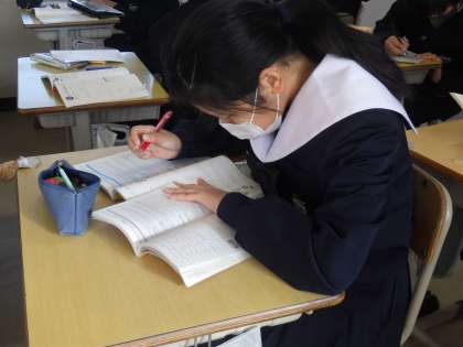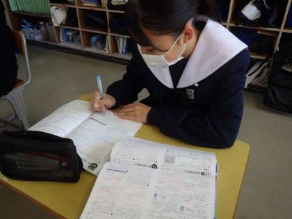 登校した生徒から、どんどんテスト勉強に取り組んでいます。いつもより少しばかり登校してくる時間も早くなっているようです。お互いに仲間から良い刺激をもらっているようです。