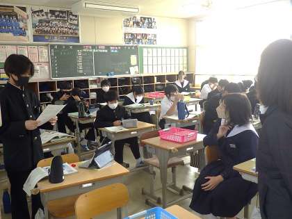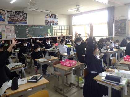日頃の生活においての防災への備えについて学んでいました。就寝中、地震によって心配となることをいろいろな角度から考え、発表していきます。