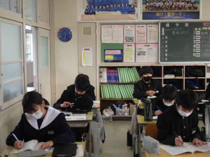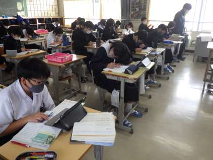 翌日に控えた後期中間テストに向けて、直前の追い込みです。仲間や先生がいる分、集中して勉強に臨めているようです。