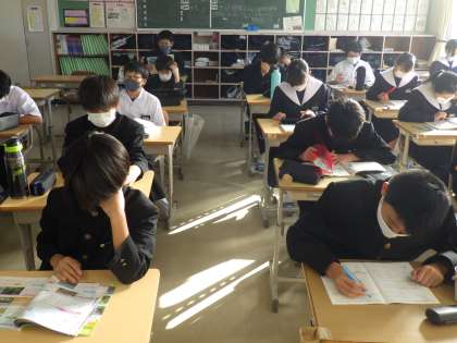 週明けでも落ち着いて全員でテスト勉強に励んでいました。残り2教科を全力で取り組んでほしいと思います。