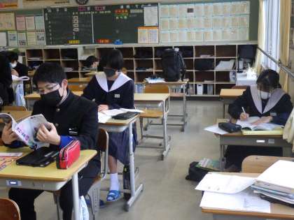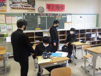 週末にしっかり勉強できたようで、登校してくる生徒の顔も何だかすがすがしく見えました。そしてすぐに直前の勉強に取りかかっていました。