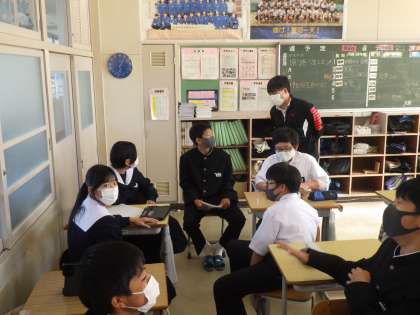 来年の1月末に計画されている「学校説明会」。来年度入学予定の6年生に向けて、石野中での学校の様子を紹介していくためのアイデアを出し合っていました。