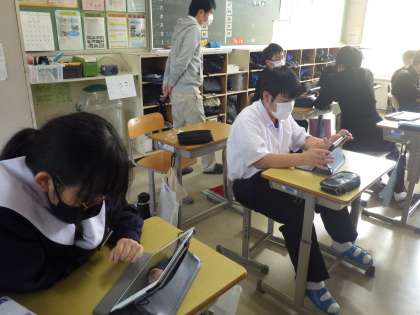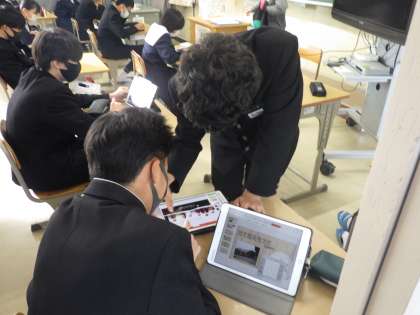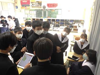 今週末に行われる「高校調べ発表会」に向けて、グループに分かれて進行係などの役割を分担していました。また、出来上がった自身のパワーポイントを見返し、発表の確認も行っていました。