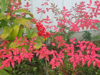 これまでにも紹介してきたナンテンの実。いよいよ真っ赤になり、年末年始での活躍の準備が整ったといった感じです。