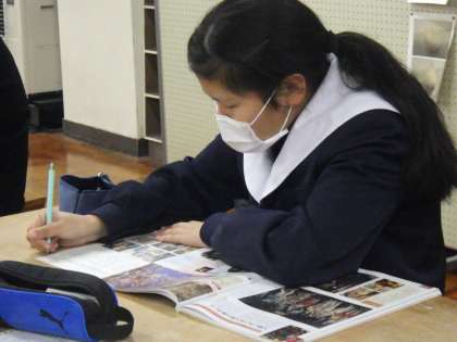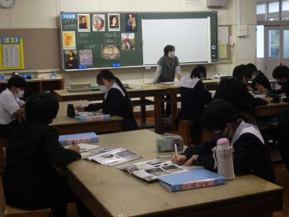 「ルネサンス3大巨匠(ダ・ヴィンチ、ミケランジェロ、ラファエロ)の『すごい』を知る」を課題に、鑑賞の学習が進められていました。作品を見る真剣な姿に感心しました。