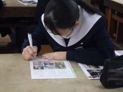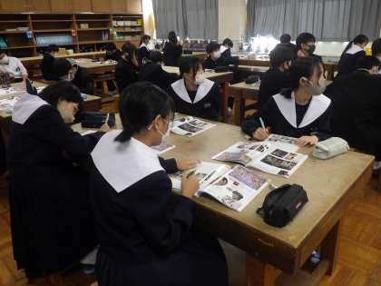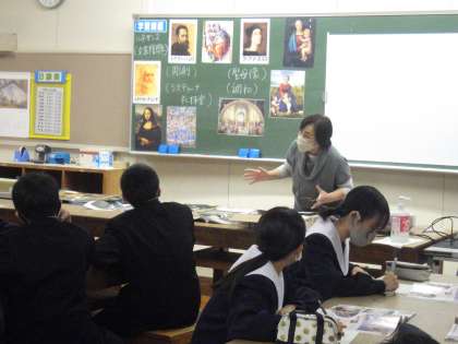「ルネサンス3大巨匠(ダ・ヴィンチ、ミケランジェロ、ラファエロ)の『すごい』を知る」を課題に、鑑賞の学習が進められていました。作品を見る真剣な姿に感心しました。