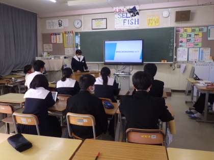 明日実施される「高校調べ発表会」に向けて、発表や係の動きのリハーサルが行われていました。内容ももちろん重要ですが、進行を務める2年生が先輩としてもプライドをもって取り組んでいます。