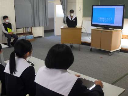 明日実施される「高校調べ発表会」に向けて、発表や係の動きのリハーサルが行われていました。内容ももちろん重要ですが、進行を務める2年生が先輩としてもプライドをもって取り組んでいます。
