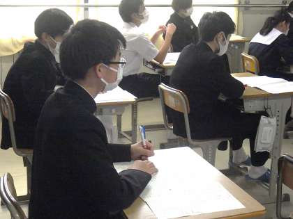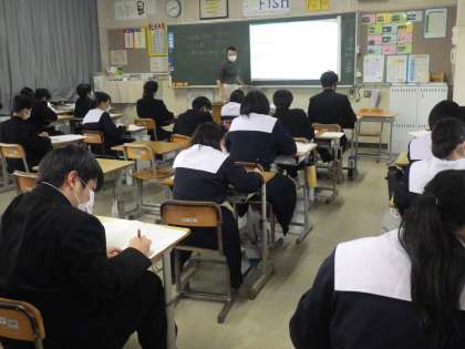中間テストの返却と解説が行われていました。問題に対しての正しい答え方など、今後のテストでも必要となる内容が伝えられていました。