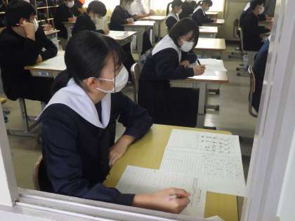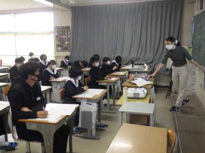 中間テストの返却と解説が行われていました。問題に対しての正しい答え方など、今後のテストでも必要となる内容が伝えられていました。