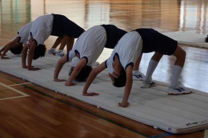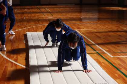 昨日行われた1年生の体育・マット運動の授業の様子です。