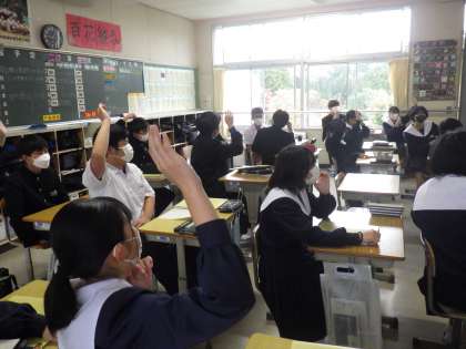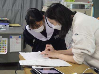 最上級・比較級の文法を使っての学習を進めるため、仲間にアンケートを取り、その結果を英文で説明していきます。集計結果をしっかりと分析し、仲間に英文で伝えるため、一生懸命考えていました。