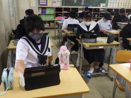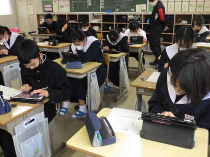 キャリア学習の一環として、「職業適性アンケート」に取り組んでいました。自分の性格や趣味、日ごろの生活の様子などを入力していくと、いろいろな職業が紹介されます。