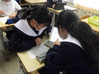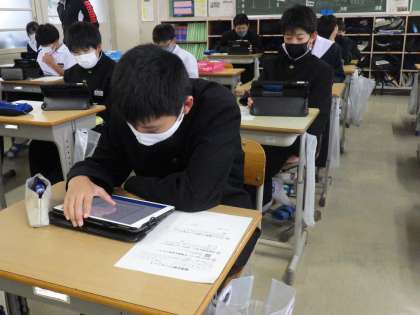 キャリア学習の一環として、「職業適性アンケート」に取り組んでいました。自分の性格や趣味、日ごろの生活の様子などを入力していくと、いろいろな職業が紹介されます。