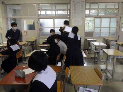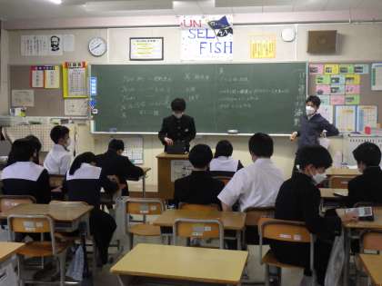 冬休み賭けに出かける自然教室での活動について、グループに分かれて話し合いが進められていました。立志式、スキーの合間の時間での様々なレクリエーションなど、他の仲間の思い出づくりや楽しい活動のためにアイデアを出し合っていました。