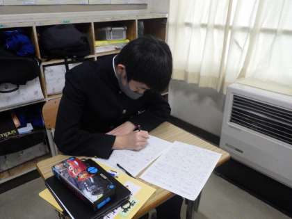 学習用タブレットの更新作業をした後、卒業文集を一生懸命書いていました。すでに担任からの添削も入り、より良いものにしようと必死に頭を使っている様子が伝わってきました。