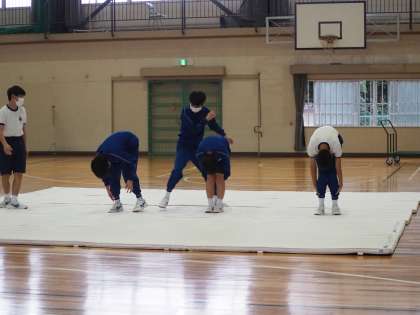 集団演技での発表会に向けて、グループで練習を繰り返しています。曲に合わせて技を表現する難しさもありますが、次第に形が見えてきており、仲間と息を合わせることの楽しさも感じているようです。