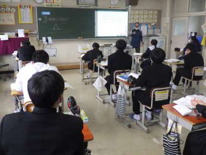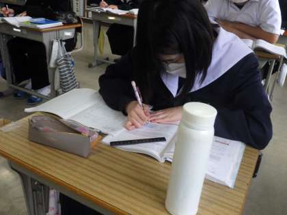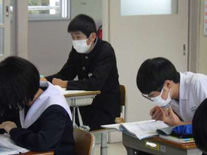 円周角の問題に取り組んでいました。覚えるべき基本的なことは多くはありませんが、問題のパターンは無限。いかに早く正確に答えを導き出すかを仲間と相談し合っています。これからは“ひらめき”も重要になってきます。