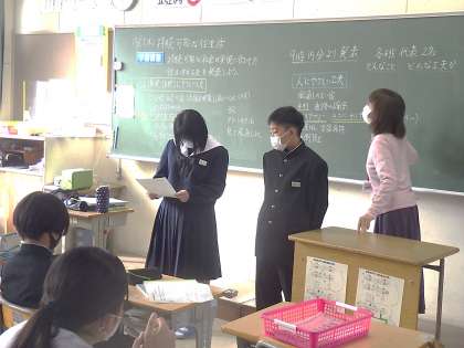 これまで調べてきた、持続可能な社会の実現のための住まい方の工夫の発表がされていました。環境と人に対してのそれぞれの工夫をしっかりと分けて発表していきます。今後の生活でも意識したものになることを期待したいと思います。