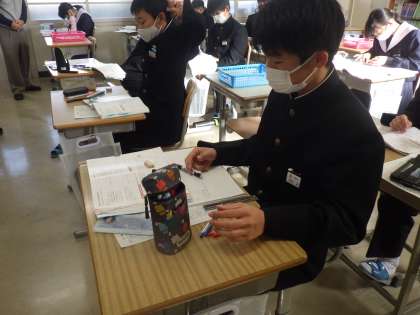 垂線の作図の仕方を学習していました。教科書やテキストの問題を解きながら、作図の方法について確認したり、身につける努力をしています。