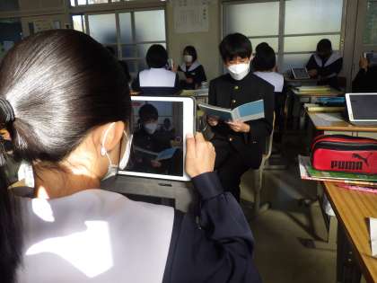 タブレットを向けられ緊張している生徒もいましたが、これまで準備したことを撮影本番ではしっかりと表現できているようでした。