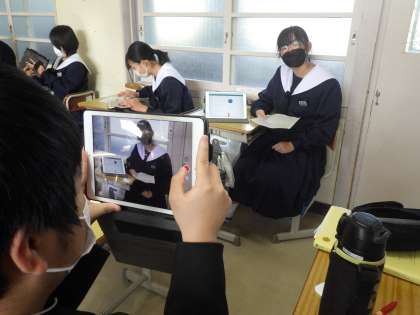 タブレットを向けられ緊張している生徒もいましたが、これまで準備したことを撮影本番ではしっかりと表現できているようでした。