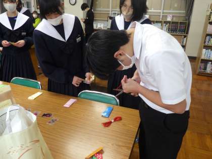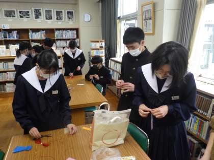 図書館まつりに向けての準備ガス埋められていました。期間中に配付するしおりもすべて委員化生徒の手作りです。冬休みも含めたくさん本を読んでもらおうと、色々と工夫だなされていました。