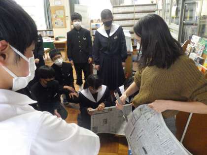 また、図書館司書さんのご厚意で新聞ラックが届きました。中学生であれば新聞を読むことにも興味を持ってほしいという願いからです。その使い方や登板についての確認もありました。