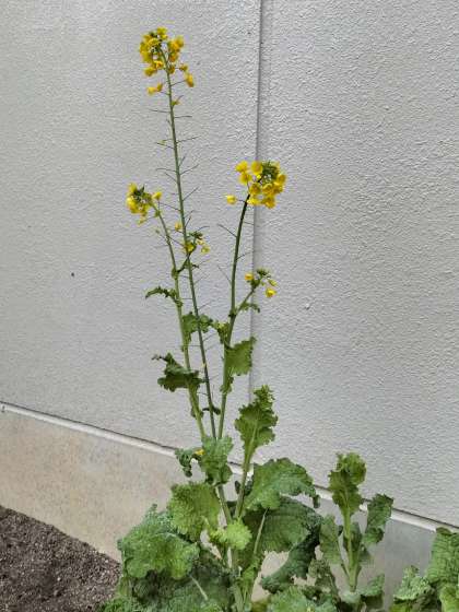 体育館西側の一角に菜の花が咲いているのを見つけました。体育館の壁沿いで日当たりがよくない所にもかかわらず、黄色のかわいらしい花を咲かせている様子から、寒さに凍えていてばかりではダメと、元気と明るさを与えられているようです。